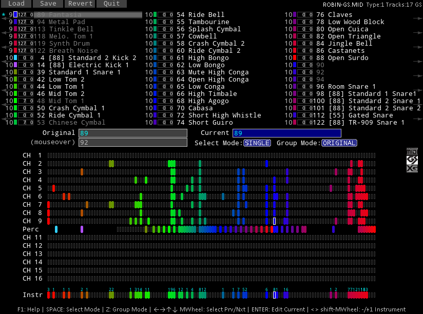 I am currently writing a MIDI file instrument changer. I have downloaded various MIDI files in the different formats (GM, GS, XG). One of my main test files for GS is ROBIN-GS.MID from The Legend of Robin Hood: Conquests of the Longbow from