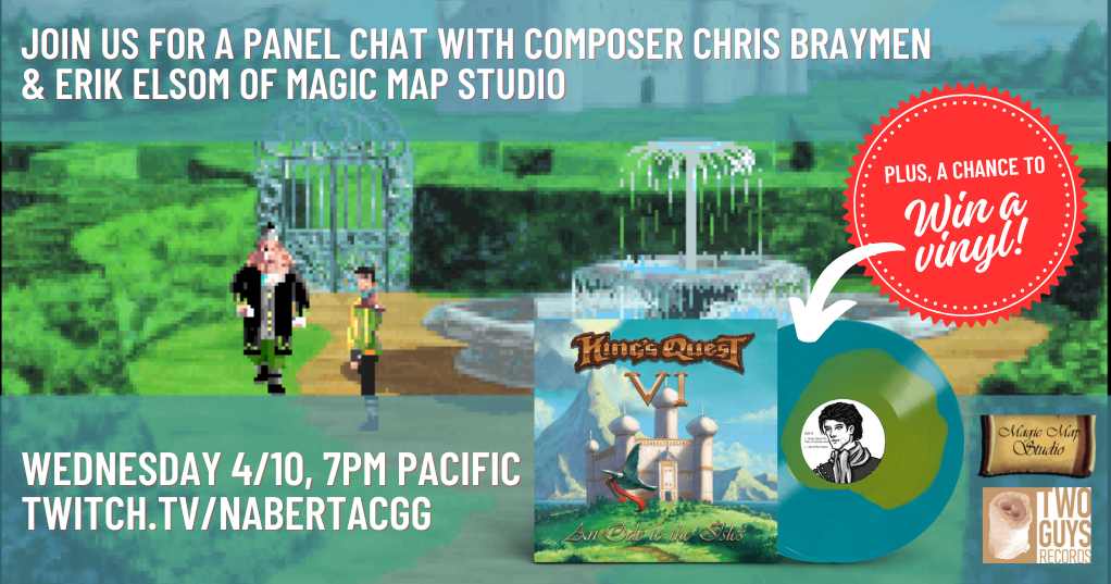 Supporting Erik Elsom's wonderful KQ6 vinyl, "An Ode to the Isles", a live panel of Sierra fans will be jointed by Sierra's (and KQ6's) master composer, Chris Braymen, to chat about the game, its music, the vinyl project itself and probably a few other things as well.