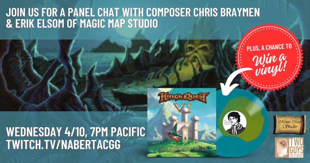 Supporting Erik Elsom's wonderful KQ6 vinyl, "An Ode to the Isles", a live panel of Sierra fans will be jointed by Sierra's (and KQ6's) master composer, Chris Braymen, to chat about the game, its music, the vinyl project itself and probably a few other things as well.